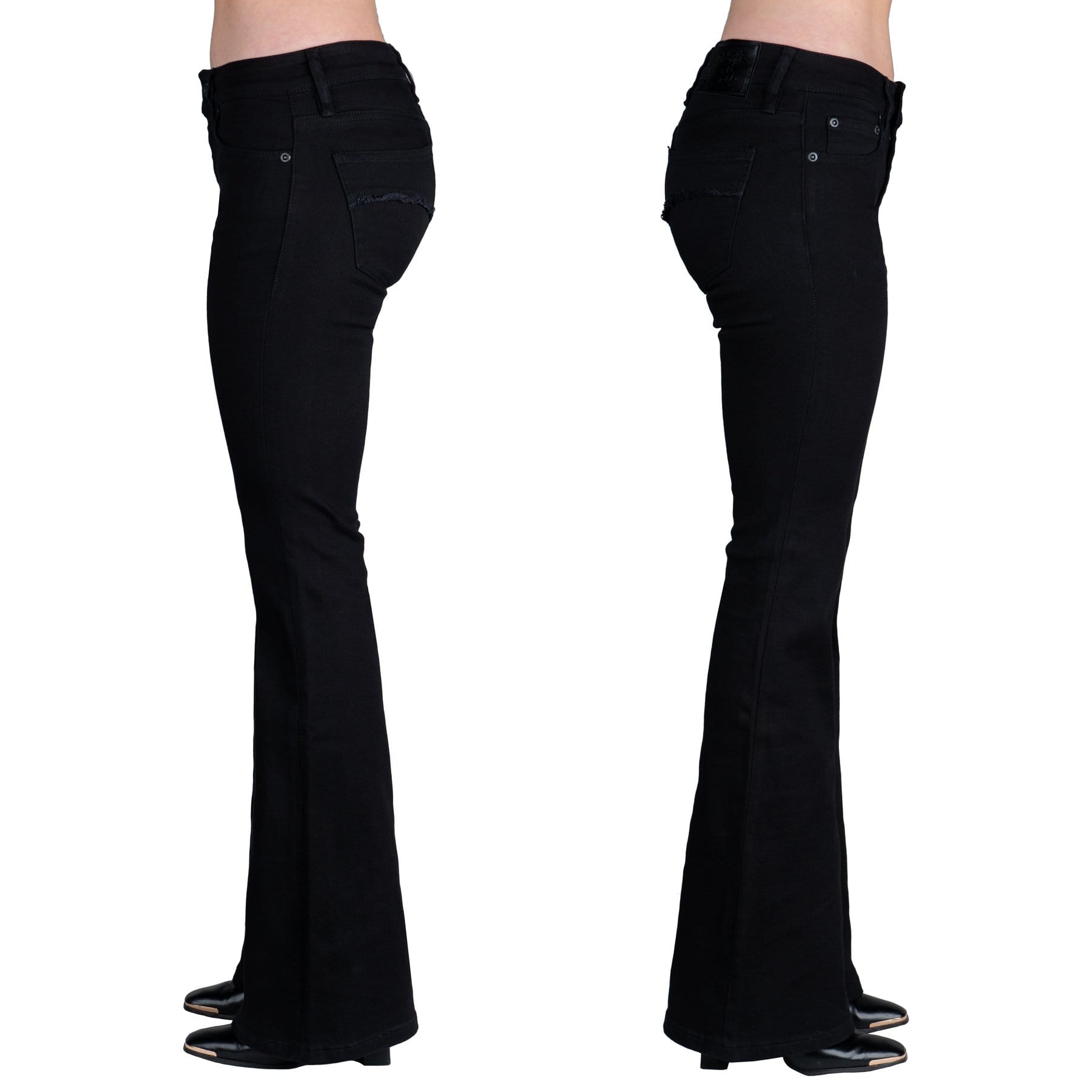 • Slimmer fit, flare cut, lower-rise, denim jeans