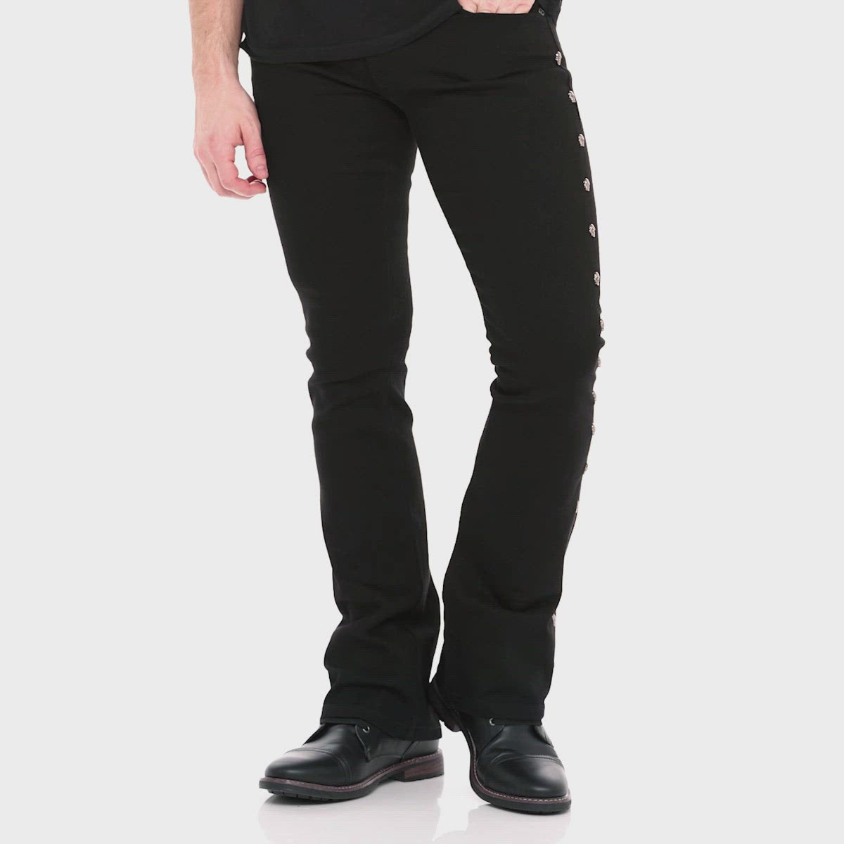 • Slimmer fit, boot cut, lower-rise, denim jeans